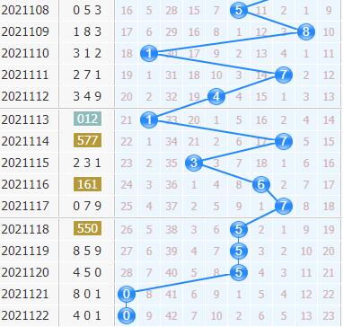 第21122期开出了401,十位上开出了0号球,振幅开出了0,号码也是连着在开出的,十位上复码开出确实在频繁出号,本期也要看好0号球的再开;不过同样的十位上冷号也是在活跃的,大遗漏的号码也要多加关注,2号球和9号球是最冷的两个号码,看好他们的升温出号。