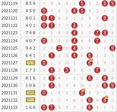 根据多年来对组选杀号经验,0号球近期都是单期出号表现,已经持续出现4次这样的情况了,本期不看好0号开出;5号和6号近期没有同期出号表现,6号球热度虽然高,但是连续爆发能力有限,在2期开出以后,不看好6号继续出号,5号遗漏10期后解冻,没有继续追加热度,本期不看好5号开出。