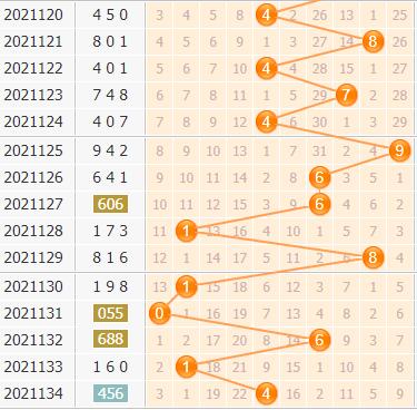 百位上期开出号码4,号码是有上升的趋势了,但是近期出号都是折返居多的,所以本期很大可能还是反向出号,那就重点看好小号码的开出了,上期号码是有些降温的,本期也出看好冷号,2号球和3号球都是大遗漏没有开出的号码,本期严防这两个号码的开出;7号球开出也是差不多十多期的间隔,本期小防一下。小孔明本期参考号码走势分析,重点推荐百位胆码:0237