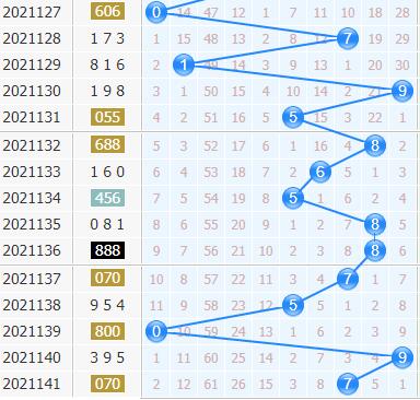 第21141期开出了070,十位上开出了7号球,号码也是小间隔开出的,看来号码些许升温了一下,但是十位上近期冷号完全就是压着温号在开出的,本期要严防号码的降温。6号球和8号球就在两边,而且都是小冷号,看好这两个号码的回暖;1号球上一次是间隔了15期开出的,现在有12期没有出号,看好它的表现。