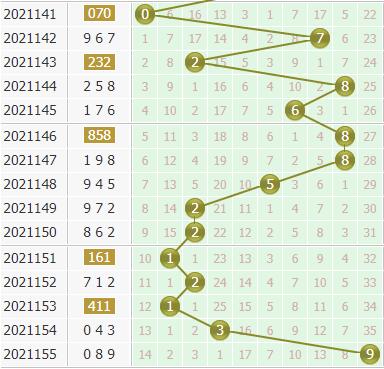 个位上期开出了9号球,振幅开出了6,一个大振幅的开出,之前个位号码开出都是小振幅,现在号码变化一下子变大了,本期也要看好大振幅的开出;0号球和4号球都是有十多期的号码开出,当前也要看好这两个号码的开出;2号球还是在走热的,出号的可能性很大,看好2号球。