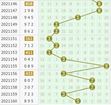 上期个位上出号是反向一个走大的,不过近期个位上号码开出的波动性很大,所以递增的走势出现的概率不高,接下来号码会反向,不看好右边的大号码。6号球和8号球这两个号码近期都在降温,不看好这两个号码。
