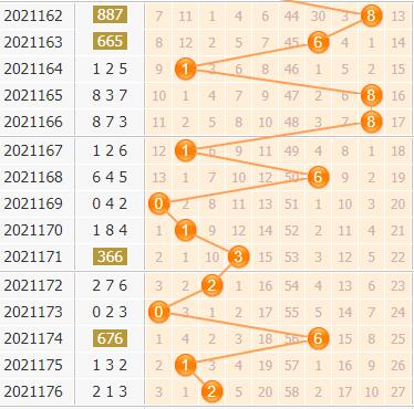 百位上期开出号码2,号码上期还是偶数的开出,百位上偶数开出还是要比奇数强势的,而且开出也有连开,本期继续看好偶数号码的表现;0号球之前就跟在2号球后面出号的,本期继续看好0号球;6号球目前升温比较明显,开出也很热,有出号的机会;4号球距离2号球比较近,而且20期没有开出,小防冷号的回暖。小孔明本期根据号码走势分析,重点推荐百位胆码:0146