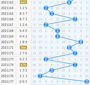 第21177期开出了693,十位上开出9号球,振幅开出了8,号码又一次是大振幅的开出,不过十位上号码的变化确实增大了不少,来回移动的幅度也大了很多,本期也要看好大振幅的开出;0号球作为一个冷号,近期肯定要看好它的回暖;2号球已经是明显升温的,出号的可能性很大;7号球最近出号也不错,看好它的开出。