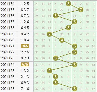 福彩3d第2021178期开奖号码是716,个位上开出了6号球,是一个大数、偶数、0路号码。