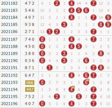 近30期里号码0-9出现开出频次分别为:号码0出现8次,号码1出现9次,号码2出现9次,号码3出现9次,号码4出现13次,号码5出现4次,号码6出现11次,号码7出现13次,号码8出现4次,号码9出现4次。一般来说,表现最冷的三码:5、8、9不会同时出现,本期杀一码:9;表现最热的两码:4、7中一般会出现奖号,那么剩下的表现比较一般的可以选择几个排除,从走势来看,可以排除:1 3
