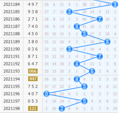 3d第2021198期开奖号码是121,十位上开出了2号球,开出了偶数、小数、2路号码。