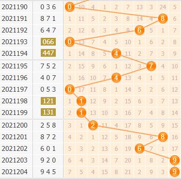 不过近期百位上冷号开出比较活跃,本期肯定也要留意冷号的开出,5号球目前最冷,有21期没有出号,本期严防5号球的回暖。