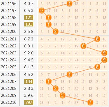 福彩3d第2021210期开奖号码是797,百位上开出了一个7,开出了奇数、大数、1路号码。