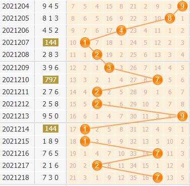 上期的7是一个大数,近10期里百位上大数开出了4期,小数开出了6期,从数据上来看,大数近期开出1期就断开,所以本期看好小数的开出。所以杀号可以从大数方面入手。