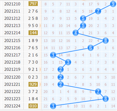 福彩3d第2021224期开奖号码是010,十位上开出了1号球,开出了奇数、小数、1路号码。