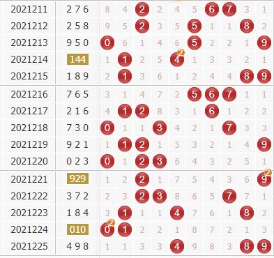 十位分析:根据多年来对十位杀号经验,推荐以下杀号技巧绝杀本期十位号码呈现给大家,上期开奖号十位杀本期十位即8,隔六期开奖号十位杀本期十位即9,上期开奖号和值尾与跨度的和的个位数绝杀十位即6,上期开奖号百位+个位的和取尾数杀本期十位即3,隔七期开奖号十位杀本期十位即7,十位杀号综合推荐89637,绝杀程度从左到右依次降低,谨慎参考。