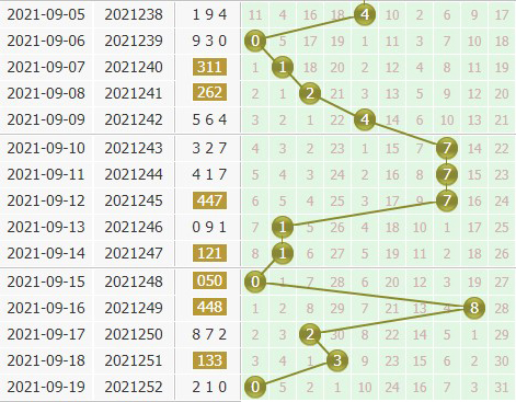 福彩3d第2021252期开奖号码是210,个位上开出了0号球,是一个小数、偶数、0路号码。