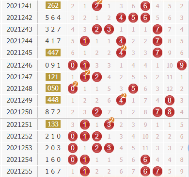 2、根据上期开奖号和值+上期开奖号个位位置上的号码相加所得的尾数杀本期开奖号,开奖号和值是14,加上期开奖号百位、十位、个位,所得的数是15、20、21,15+20+21=56,所以本期杀掉6号球的开出。