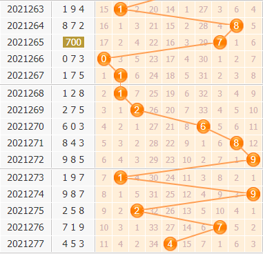 上期的4是一个小数,近10期里百位上大数开出了5期,小数开出了5期,从数据上来看,大小持平,本期看好大数开出,所以杀号可以从小数方面入手。