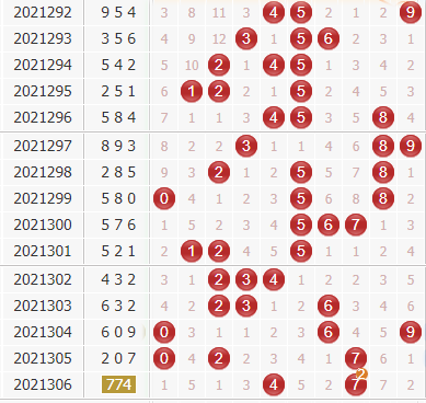 第2021306期3D奖号组选为:774,近30期里,号码0出现8次,1出现4次,2出现9次,3出现9次,4出现8次,5出现18次,6出现8次,7出现6次,8出现8次,9出现7次,奇偶比为47:43,奇数走热,本期看好奇数走热,奇偶比参考2:1;大小比为:49:41,大号走热,本期看小数热出,大小比参考1:2。
