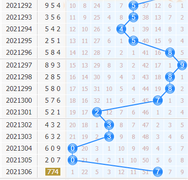 第21306期开出了号码774,十位上开出了7号球,1路号码的开出,十位上1路号码开出是最冷的,最多就一期,不过跟在1路号码后面开出的是2路号码更多,本期也要看好2路号码的表现。8号球当前有七期没有开出,近期号码回暖比较多,看好8号球的开出;2号球之前是冷号的开出,这一次有走热的趋势,本期看好2号球的开出。