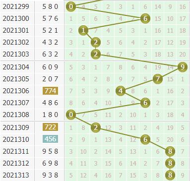 上期个位上开出了8号球,大号,偶数,2路号码的开出。