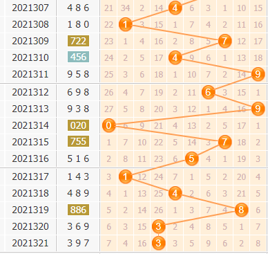 百位上期号码是连开的,重复开出了3号球的,百位上复开不是很多,但是每一次开出都还挺强势的,本期可以小防3号球的继续开出;号码复开之后,接下来号码出号就会走热,本期也要看好温号的开出。1号球和4号球也是有在开出的,本期看好这两个号码的开出。