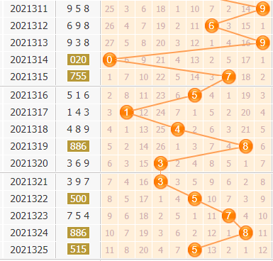 3、根据上期百位开奖号*3,所得的尾数再加5,所得的尾数杀本期百位开奖号,即1*3=3,3+5=8,本期杀掉8号球的开出。