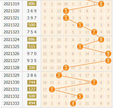 上期的4是一个小数,近10期里百位上大数开出了6期,小数开出了4期,从数据上来看,大数热出,本期看好小数开出,所以杀号可以从大数方面入手。