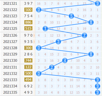 3d第2021335期开奖号码是493,十位上开出了9号球,开出了奇数、大数、0路号码。