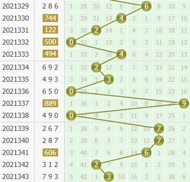 个位奖号3最近三期开出之后,其下期分别落号:5、9、0,近50期里5开出了4期,9开出了4期,0开出了9期。号码出现在:低频区域、低频区域、高频区域,本期个位可以排除高频号码。