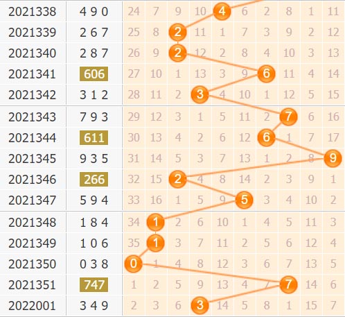 百位上期是开出了3号球,小数、奇数,2路号码。