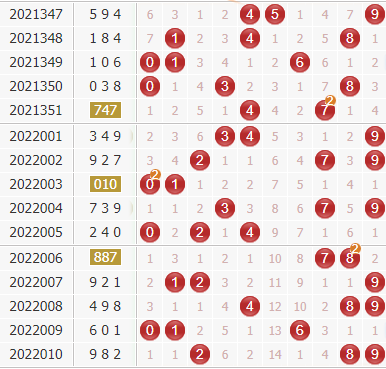 上期的开奖号码是982,开出了大大小,奇偶偶,和值是19,和尾是9,跨度是7,开出了022路号码。