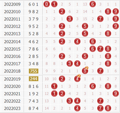 福彩3d第2022023期开奖号码是874,开出了大大小,偶奇偶,和值是19,和尾是9,开出了211路号码。