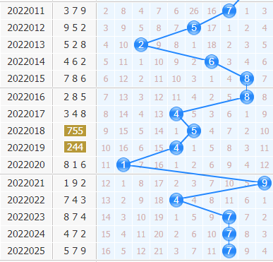 第22025期开出了号码579,十位上开出了7,振幅0,号码是连着开出,而且7号球已经连着三期的开出,那接下来十位上冷号开出的机会很大。3号球是目前开出最冷的,严防一下3号球;2号球和6号球都是遗漏了近十期的号码,回暖的可能性最大,重点关注。