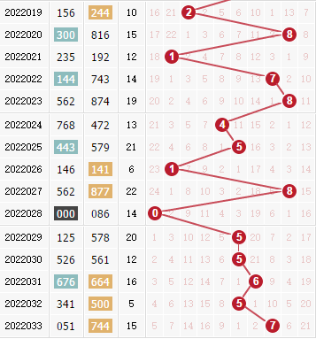 3d第22033期开奖号码是744,百位上开出了7号球,开出了大数、奇数、1路、质数号码。