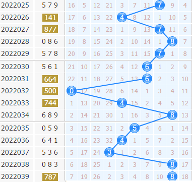 3d第2022039期开奖号码是787,十位上开出了8号球,开出了偶数、大数、2路号码。