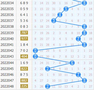第22048期开出了号码225,十位上开出了2,振幅6,大振幅的开出,号码变化开始大起来了,近期大振幅出号的频率是越来越高,本期也要看好大振幅的开号。上期号码也是回暖的,近期号码升温很明显,继续看好号码的走热。