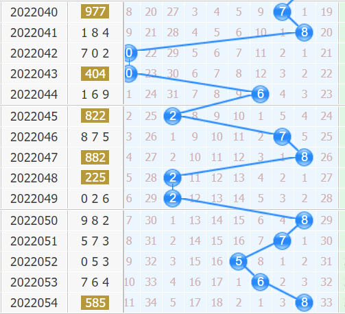 福彩3d第2022054期开奖号码是585,十位上开出了8号球,开出了偶数、大数、2路号码。