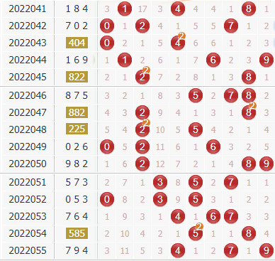 近30期里号码0-9出现开出频次分别为:号码0出现8次,号码1出现5次,号码2出现6次,号码3出现4次,号码4出现8次,号码5出现10次,号码6出现9次,号球7出现10次,号码8出现12次,号码9出现6次;一般来说,表现最冷的两码:1、3,不会同时出现,本期杀一码:1;表现最热的号码:5、7、8,一般会出现奖号,那么剩下的表现比较一般的可以选择几个排除,从走势来看,可以排除:0、9。