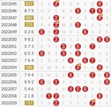 近30期里号码0-9出现开出频次分别为:号码0出现8次,号码1出现5次,号码2出现9次,号码3出现4次,号码4出现8次,号码5出现10次,号码6出现9次,号球7出现9次,号码8出现10次,号码9出现7次;一般来说,表现最冷的两码:1、3,不会同时出现,本期杀一码:3;表现最热的号码:5、8,一般会出现奖号,那么剩下的表现比较一般的可以选择几个排除,从走势来看,可以排除:1、6