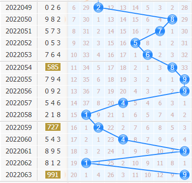 第22063期开出了号码991,十位上开出了9,振幅8,大振幅的开出,十位上近连着三期都是大振幅的开出,号码来回变化很大,本期也要看好大振幅的出号。1号球和4号球都是近期有在热开的号码,开出都不错,有机会回暖出号。