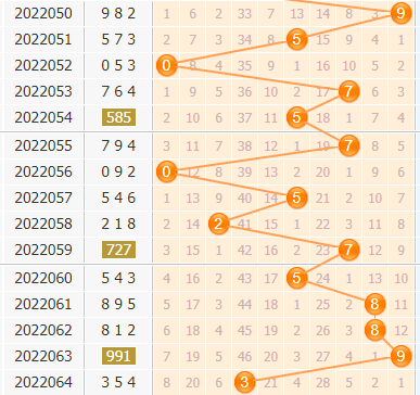 前一次百位号码3出现之后,其下期奖号分别开出:7,近50期里7出现了9次。出现在:高频区域,本期百位排除低频区域号码。
