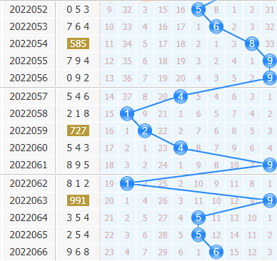 福彩3d第2022066期开奖号码是968,十位上开出了6号球,开出了大数、偶数、0路号码。