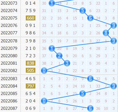 福彩3d第2022087期开奖号码是069,十位上开出了6号球,开出了偶数、大数、0路号码。