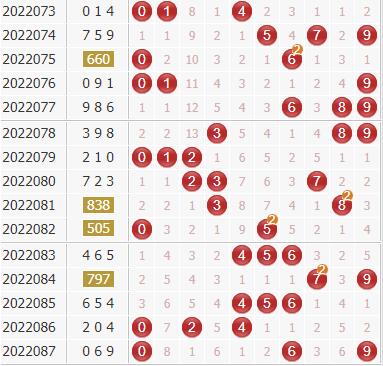 近30期里号码0-9出现开出频次分别为:号码0出现8次,号码1出现7次,号码2出现7次,号码3出现8次,号码4出现7次,号码5出现10次,号码6出现8次,号球7出现6次,号码8出现10次,号码9出现12次;一般来说,表现最冷的两码:1 7,不会同时出现,本期杀一码:7;表现最热的号码:5 8 9,一般会出现奖号,那么剩下的表现比较一般的可以选择几个排除,从走势来看,可以排除:0 3。