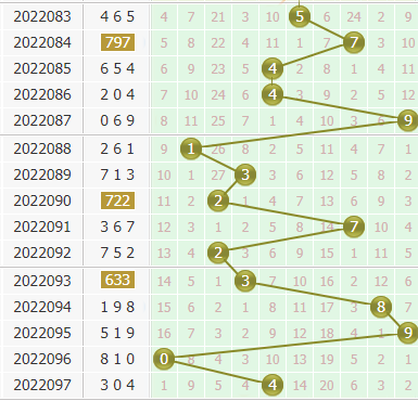 个位奖号4最近三期开出之后,其下期分别落号:9、4、9,近50期里9开出了3期,4开出了7期,9开出了3期。号码出现在:低频区域、高频区域、低频区域,本期个位可以排除高频号码。