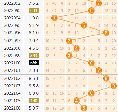 上期的5是一个大数,近10期里百位上大数开出了6期,小数开出了4期,从数据上来看,大数热出,本期看好大数开出,所以杀号可以从小数方面入手。