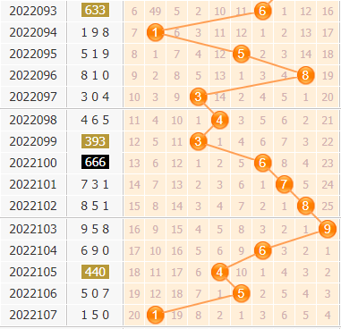 前一次百位号码1出现之后,其下期奖号分别开出:5,近50期里5开出了5次,看来是开出了一个温码,从走势来看,本期的话建议杀热号。