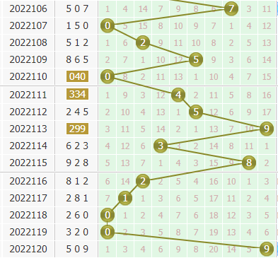 2、根据上期试机号个位+上期开奖号个位,乘以2所得的尾数杀本期开奖号个位,0+9=9,9*2=18,本期个位杀掉8号球的开出。