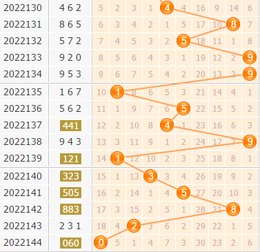 前两次百位号码0出现之后,其下期奖号分别开出:3、5,近50期里3开出了6次,5开出了10次,看来是开出了热码,从走势来看,本期的话建议杀冷号。