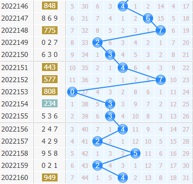 福彩3d第2022160期开奖号码是949,十位上开出了4号球,开出了偶奇数、小数、1路号码。
