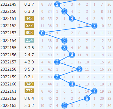 福彩3d第2022163期开奖号码是532,十位上开出了3号球,开出了奇数、小数、0路号码。