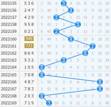 福彩3d第2022169期开奖号码是719,十位上开出了1号球,开出了奇数、小数、1路号码。
